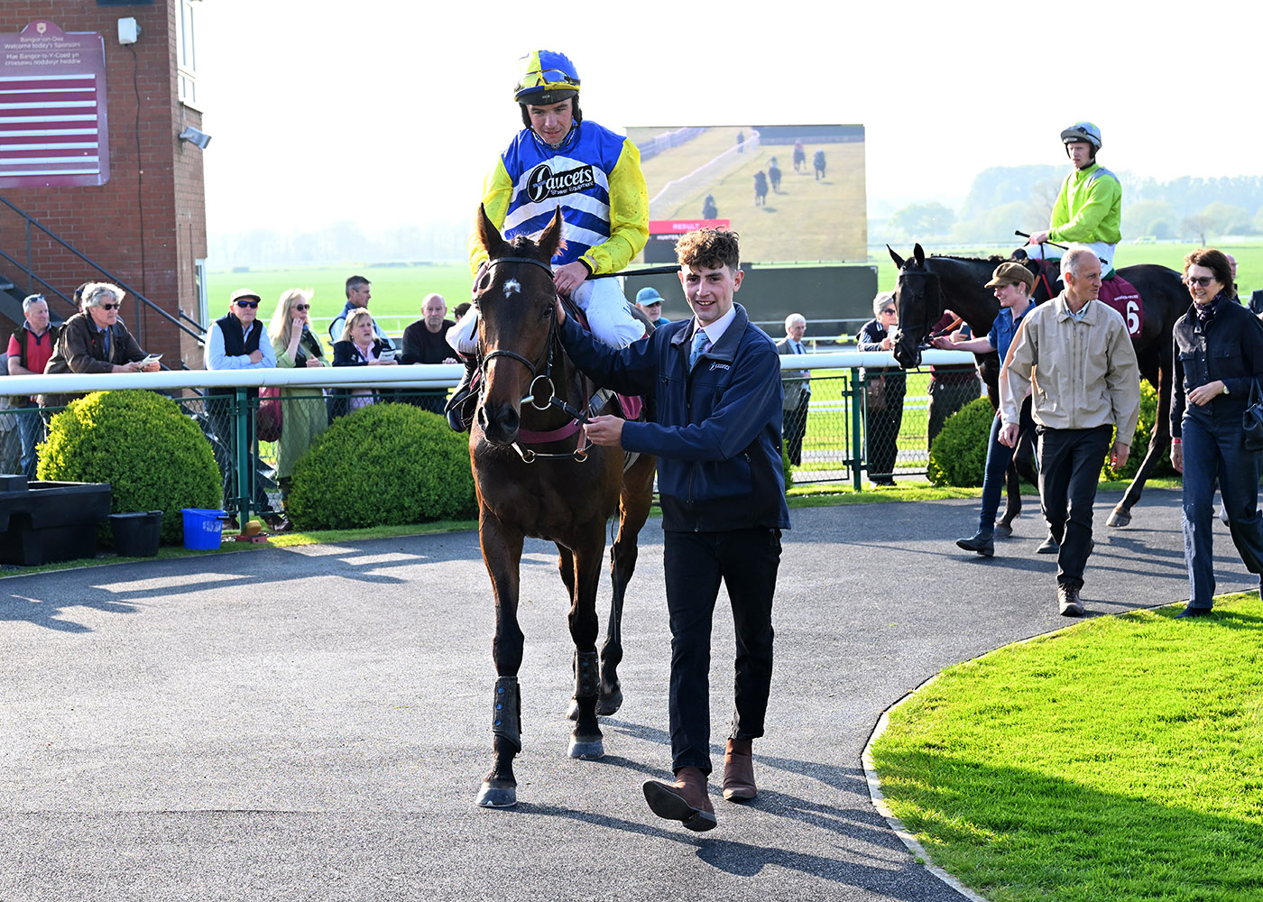 Providing a double for trainer and jockey, Present Fair (14/1) stayed on strongly to take the sixth race, seeing off gallant stablemate Bellbird (9/1) by 2 ½ lengths for Peter Kavanagh and Donald McCain. Prominent throughout, Present Fair raced along the rail for much of the penultimate contest, travelling nicely behind two-time course winner Midnight Jewel (11/1) at the head of affairs. Taking the lead over four-out, Present Fair was tracked on the run towards the final three obstacles by stablemate Bellbird (9/1), the pair now looking the two most likely to have a say in the finish. Kicking a couple of lengths clear before two-out, it was hard work for Present Fair to maintain his lead in the home straight. However, responding well for Kavanagh’s urgings, the leader pulled out more in the final furlong, jumping the last with aplomb and staying on stoutly to provide the Donald McCain Racing Club with their fifth career winner at Bangor-On-Dee!