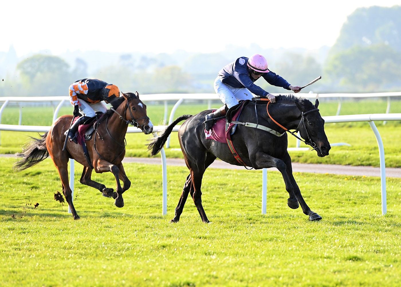 Maintaining his 100% record at Bangor-On-Dee, Hunter Legend (9/4F) comfortably saw off the opposition in Race 2, jumping boldly on his way to recording a 7-length victory for Charlie Deutsch and Venetia Williams. Starting off in mid-division, Hunter Legend gradually grew into the contest under Charlie Deutsch, never too far away from Grain d’Oudaries (5/1) in front rank as the remainder of the field raced closely in behind. Moving into second place three fences from home, Hunter Legend cantered all over his rivals around the home turn, taking a narrow lead from a ridden along Grain d’Oudaries with the final two fences in sight. Nudged clear and sailing over both obstacles with ease, Hunter Legend quickly had the race sewn up, scampering clear in the closing stages to secure Williams’ 40th and Deutch’s 42nd winner of the season!