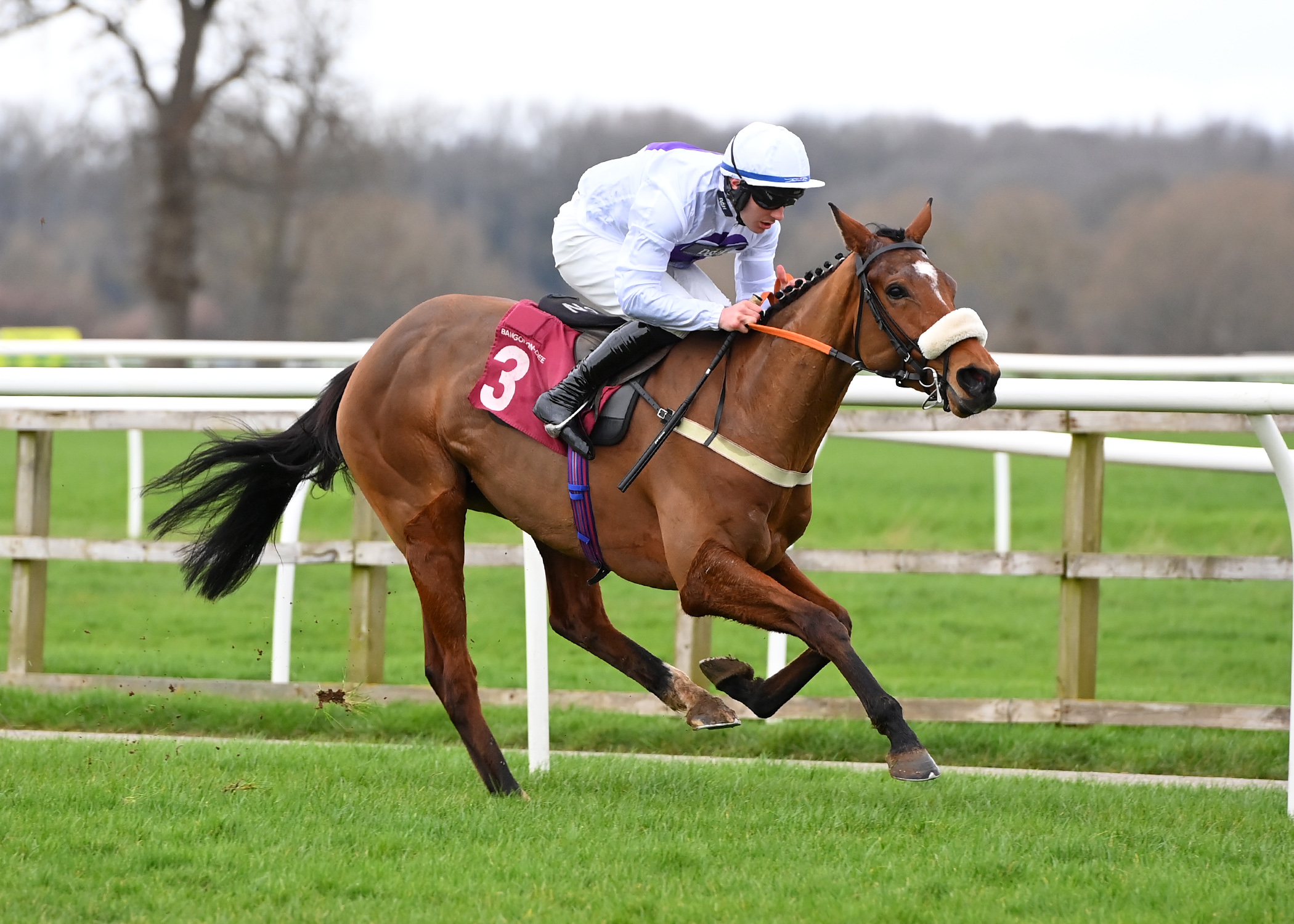 Off the mark over fences after a hiccup last time out, Just Aidan (16/1) readily outran his odds when landing the sixth race by 2 lengths for James Best and Harriet Dickin. Always prominent, Just Aidan tracked the pace behind the leaders for a large portion of the race, and as a number of his opponents began to cry enough with three fences to go, the seven-year-old gelding really found his feet, jumping boldly and staying on readily to fend off the challenge of Port Or Starboard (14/1) in the closing stages. A chasing specialist, James Best has a plethora of big race wins to his name, including two Becher Chases with Walk In The Mill, and two Grimthorpe Handicap Chases with Moroder!