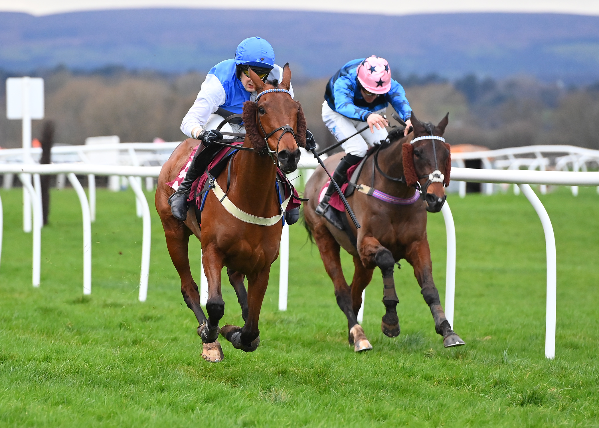 A model of consistency, Halftheworldaway (8/13F) broke her duck in fine style when running out a taking winner of the first race, scooting clear up the run-in to land the spoils for Craig Nichol and the Greenall-Guerriero team. In command from the outset, Halftheworldaway led from start to finish in the opener, jumping well throughout before displaying a sharp turn of foot after the second-last and careering away to score by a stylish six lengths. A fruitful combination, trainer and jockey were also successful at Kelso in the 2025 Edinburgh Gin Chase, scoring with smart stayer Duke Of Deception!