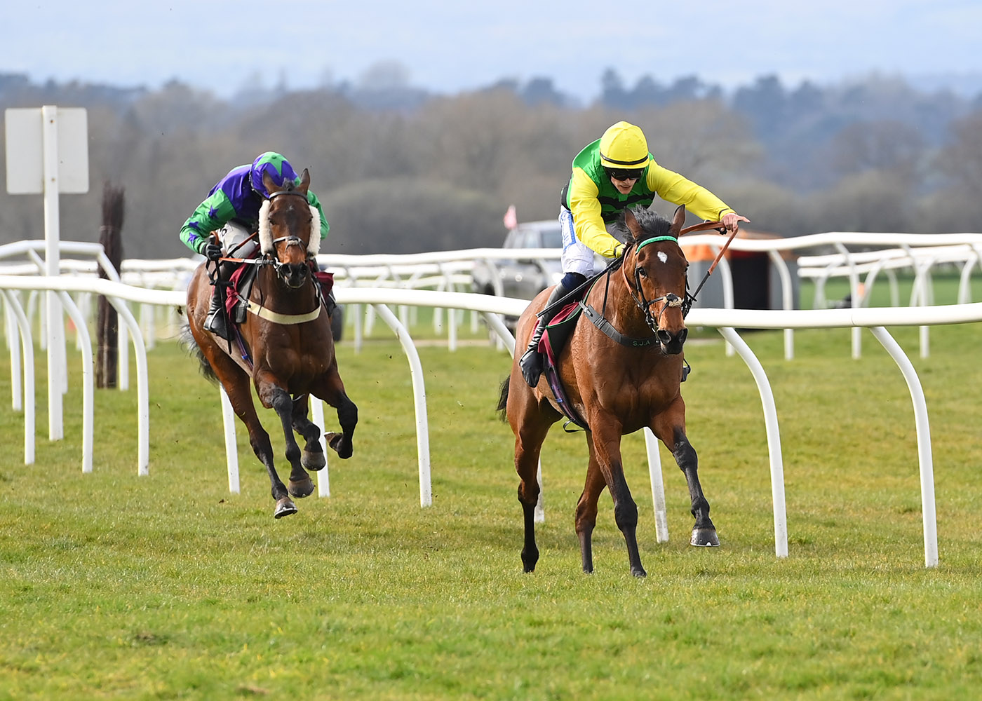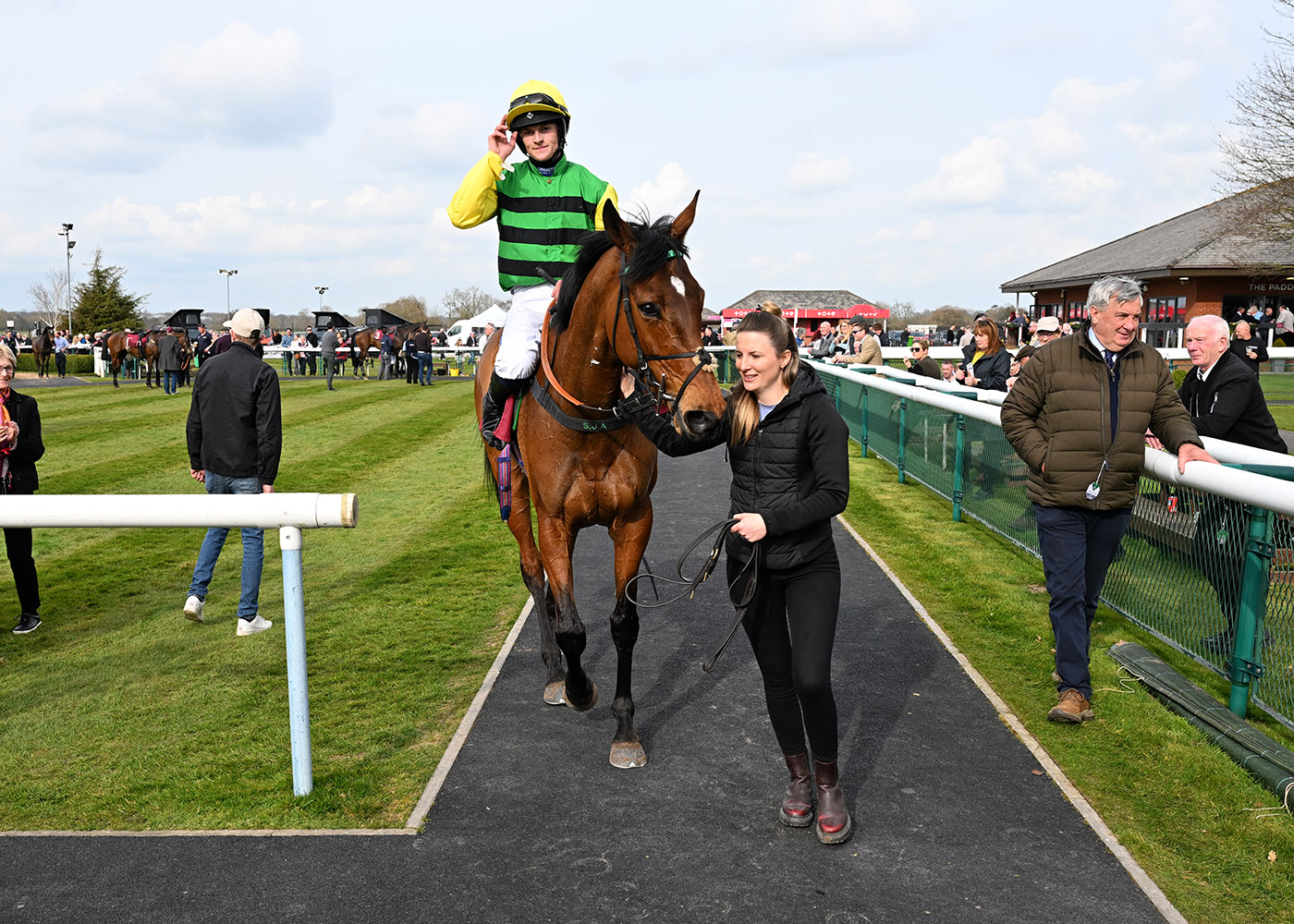 Relentless from the front, Orbys River (6/1) pulled off the ‘catch me if you can’ tactics perfectly when scoring in the third race, guided home by 2 ¾ lengths under Toby Wynne for trainer Sam Allwood. Nudged into an early lead Orbys River set a decent tempo for the majority of the third race, always in the ascendency as market leader Stick With Me Sam (5/4F) stalked in behind before taking a crumpling fall at the fourth-last. Quick to take advantage of his rival’s tumble, Toby Wynne pushed Orbys River into an even more established lead around the home turn, travelling much the best over the second-last fence as Neigh Botha (7/1) stayed on for pressure. Impressive over his obstacles, Orbys River settled the score stylishly in the final furlong, ridden out to make sure towards the line and bringing up trainer Sam Allwood’s second and Toby Wynne’s eleventh winner of the season!