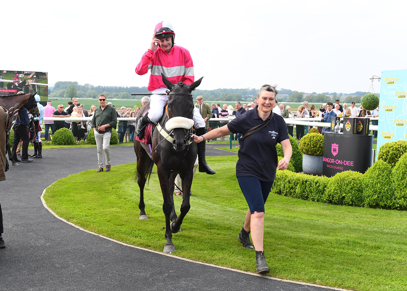 Six competitive races set the perfect stage for this year’s edition of Wrexham Day (in partnership with Wrexham Lager) at Bangor-On-Dee. The feature race of the afternoon came at 5:40pm in the competitive Wrexham Lager Celebrates Wrexham AFC Promotion Handicap Chase (Class 2), on a day where sunny spells ensured ground conditions remained between Good and Good To Soft.